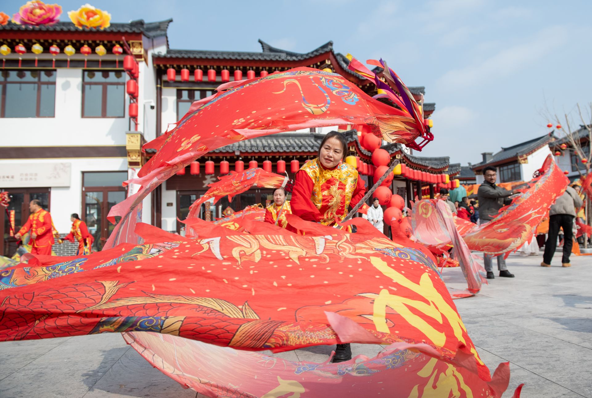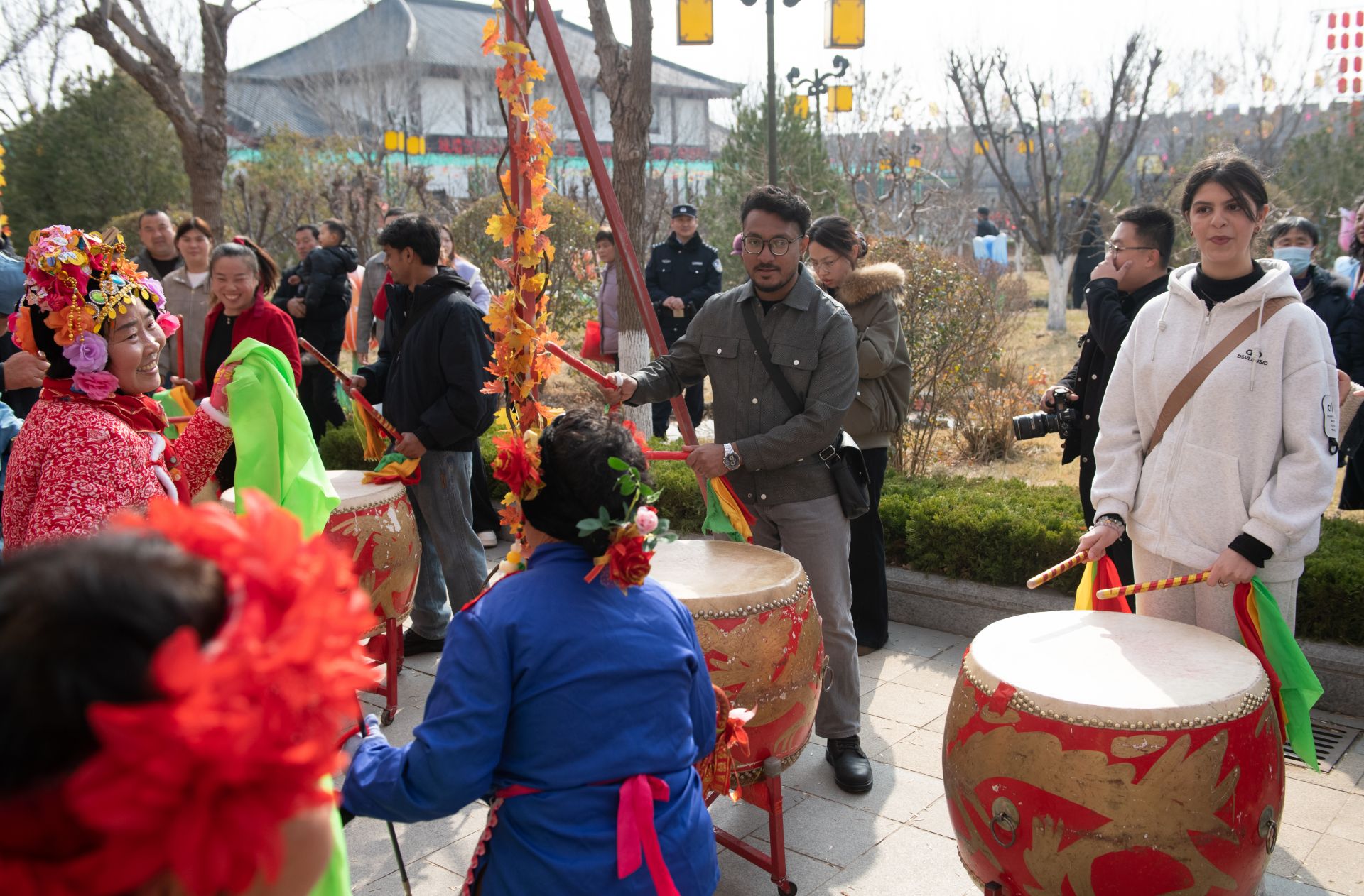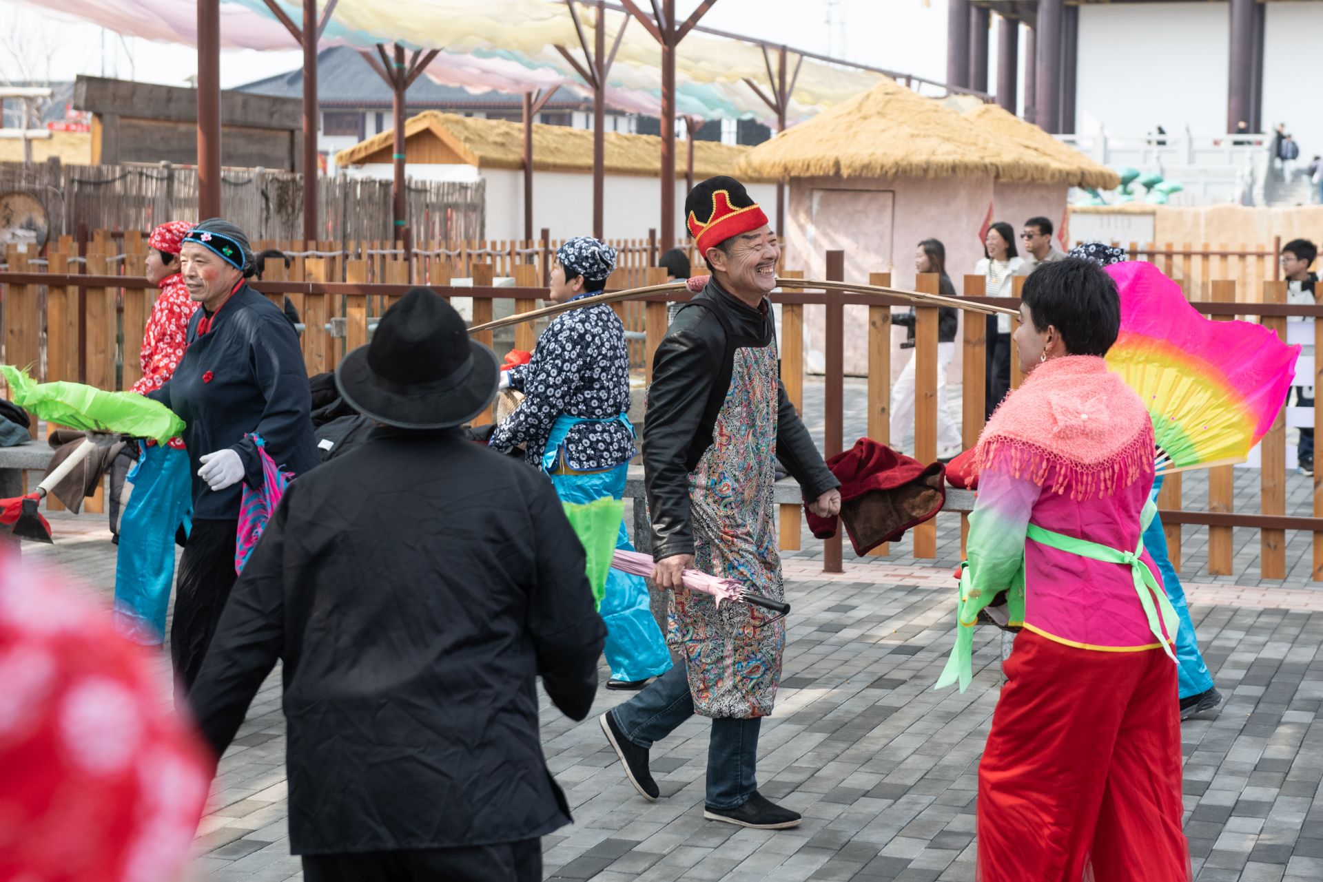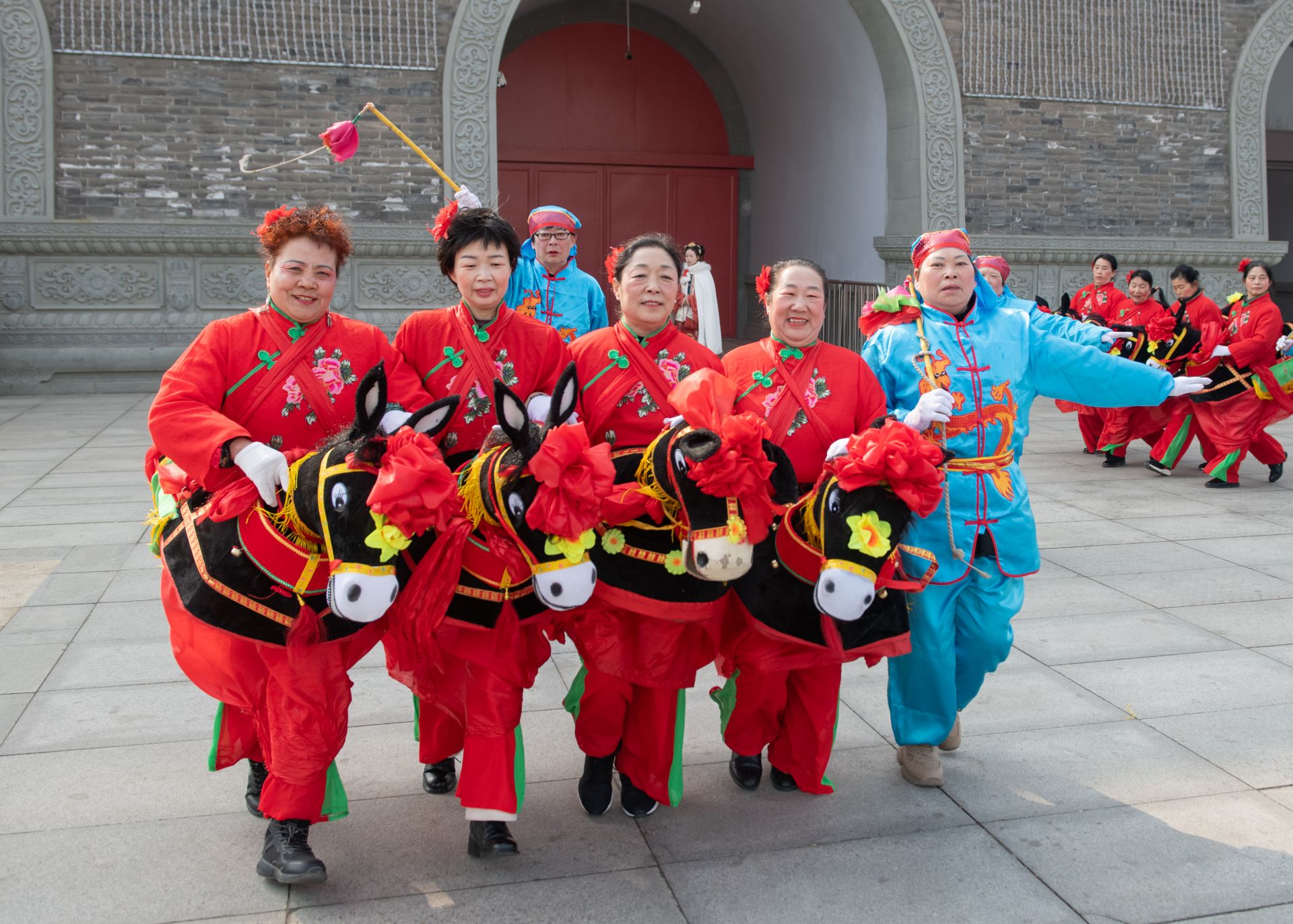 此次慶云場的展演,首次采用行進(jìn)式觀演方式,引領(lǐng)嘉賓與游客在移步換景中邂逅民俗之美。來自全市12個縣市區(qū)的優(yōu)秀演出隊伍,與慶云縣9個鄉(xiāng)鎮(zhèn)的群眾演員,分散在文博園內(nèi)的多個重點點位,扭起大秧歌,舞動彩帶龍,表演德州跑驢,擂響威風(fēng)鑼鼓……一個個原汁原味的民俗節(jié)目輪番登場,讓人目不暇接,掌聲喝彩聲此起彼伏。