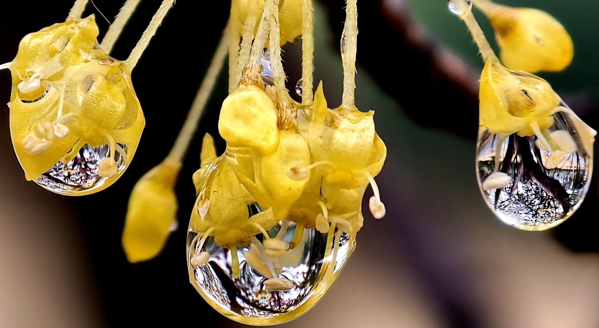 一場春雨過后,晶瑩剔透的雨珠綴滿枝頭,勾勒出別樣春日景致。