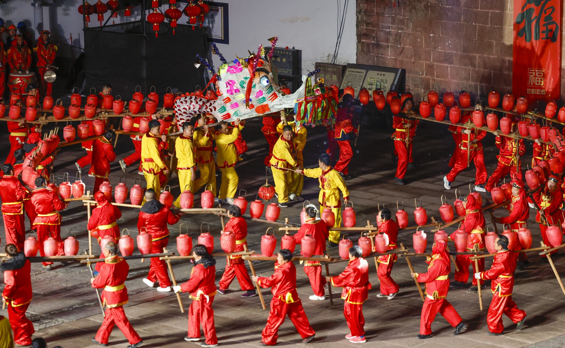 農(nóng)歷正月十二,安徽省黃山市休寧縣“福滿狀元城”舞龍大會在狀元廣場熱鬧開演。百米長的非遺民俗徽州板凳龍在街巷間穿梭游動,與鐘鼓樓相映成輝,喜迎元宵佳節(jié)。